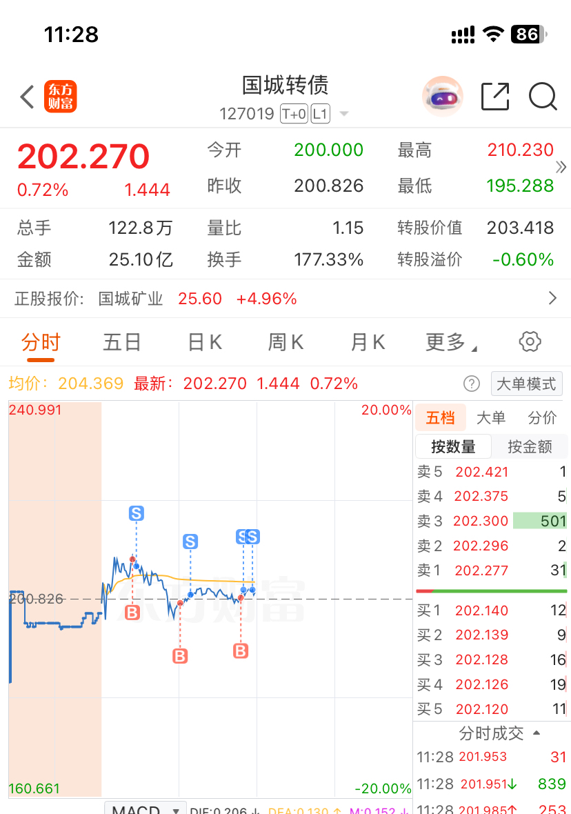 $国城转债(SZ127019)$ 黑色星期五虎口夺食,大中和你套出4个点 下班了 感谢主力给口汤喝