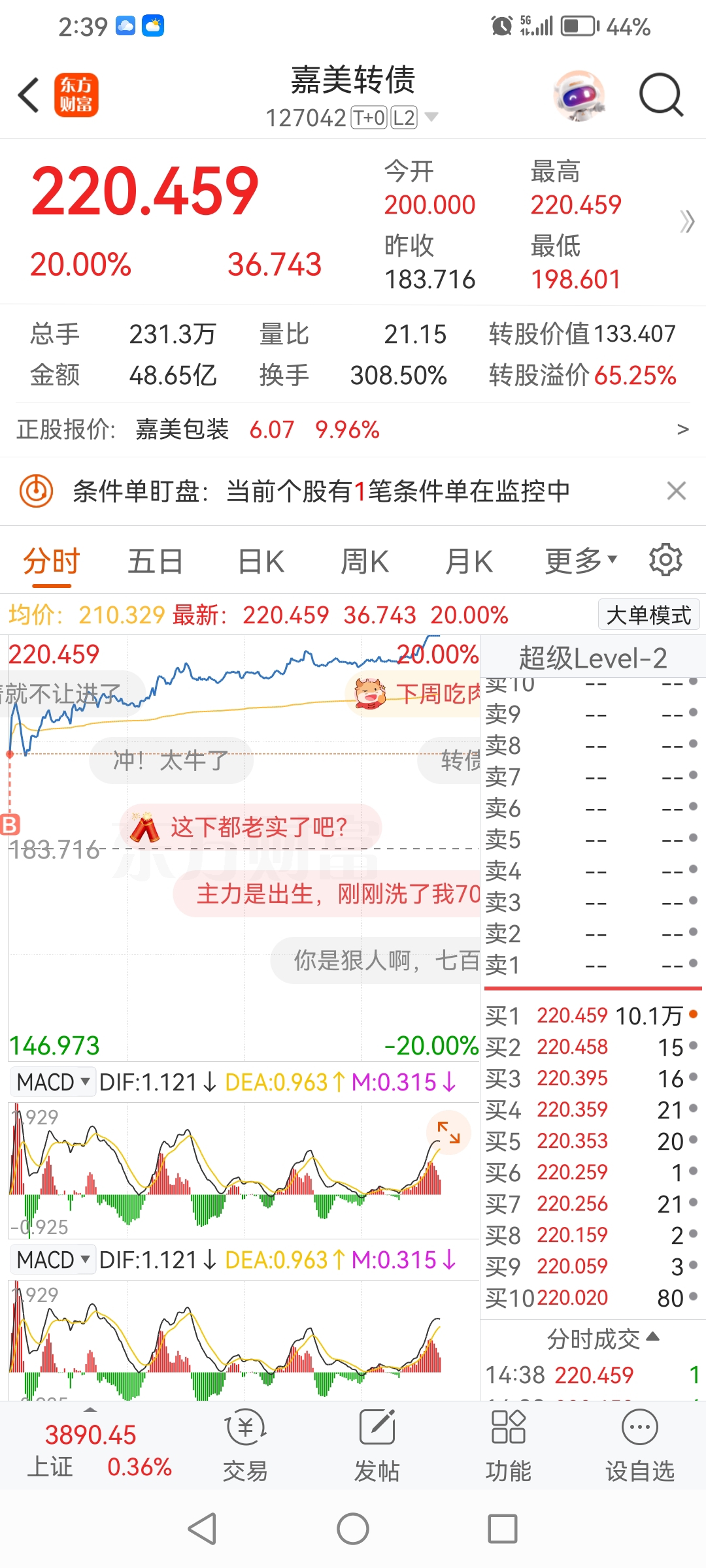 $嘉美转债(SZ127042)$ 能像我一样开盘买进拿到现在没做T没卖的应该不多了吧