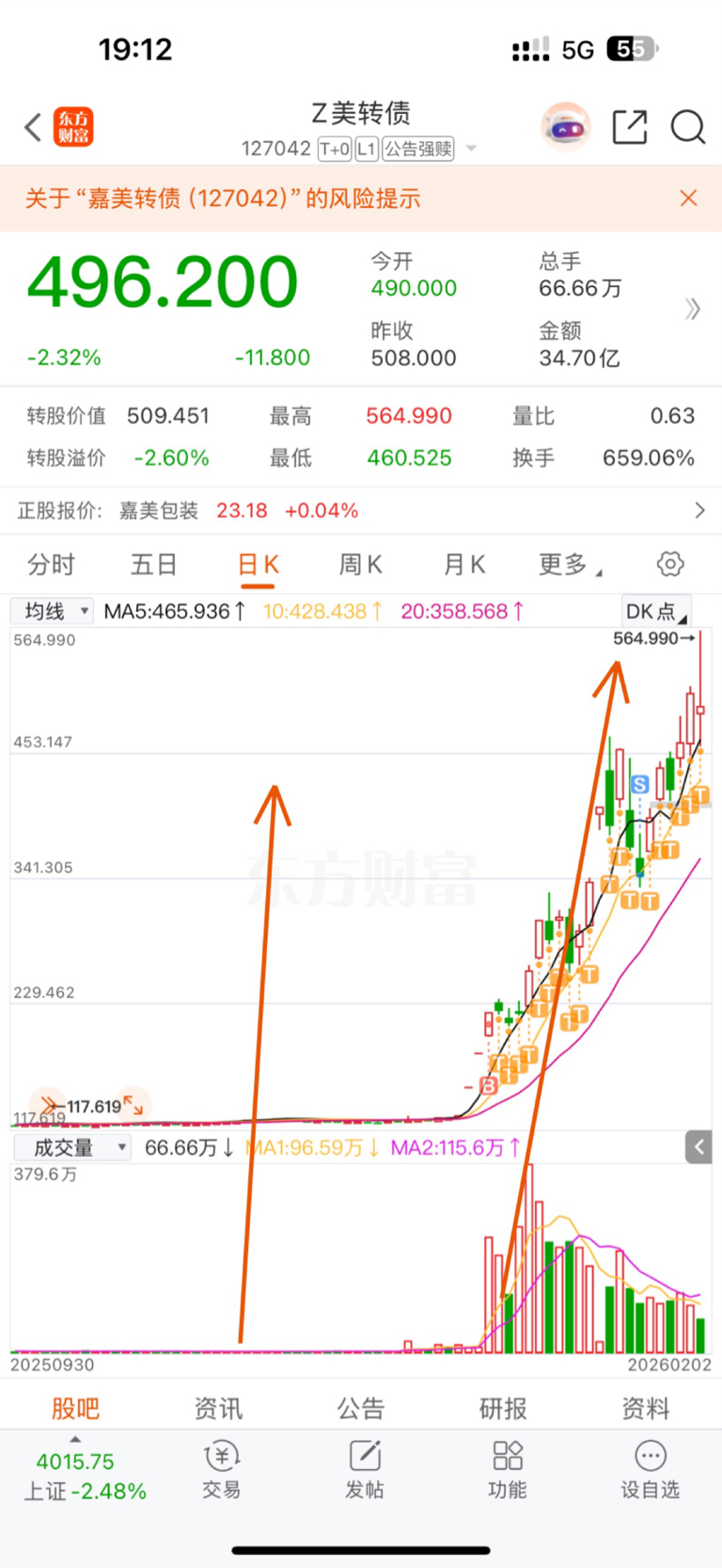 从你开板之后就没有一天离开过你,上周停牌前刚好清了,今天参与了一点,早盘买入套了几千元,最后盈利一点卖出,结果拉了10多个点!感谢有你,这一路让我赚了8万多(虽然大部分都在其它股票亏完了)。一路上虽然越T成本越高,也没有敢全仓,所以盈利不多!但是还是非常感激美嘉,明天看情况入正股,希望仍然可以带领我们散户吃上点小肉!加油啊兄弟们