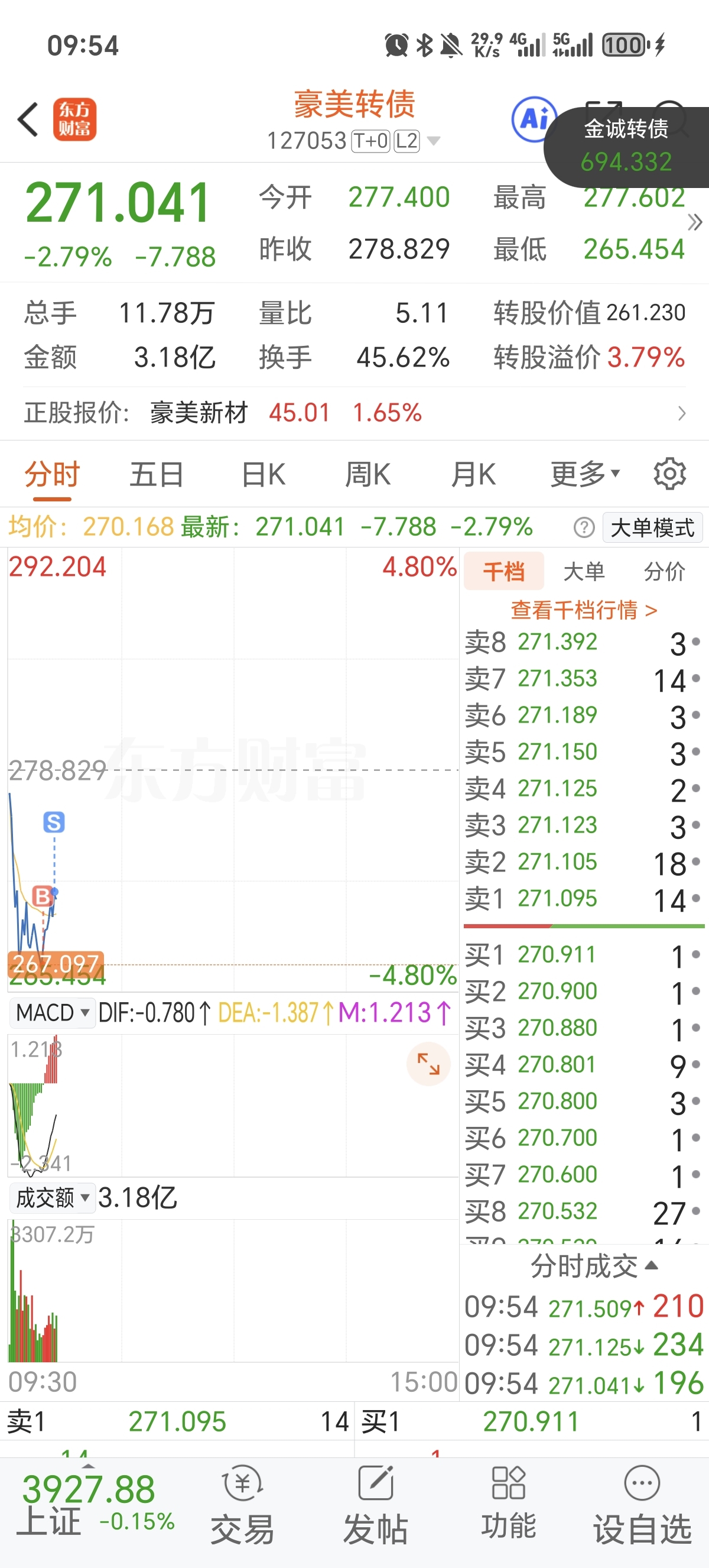 $豪美转债(SZ127053)$ 先落袋为安一半,留一半看后续!