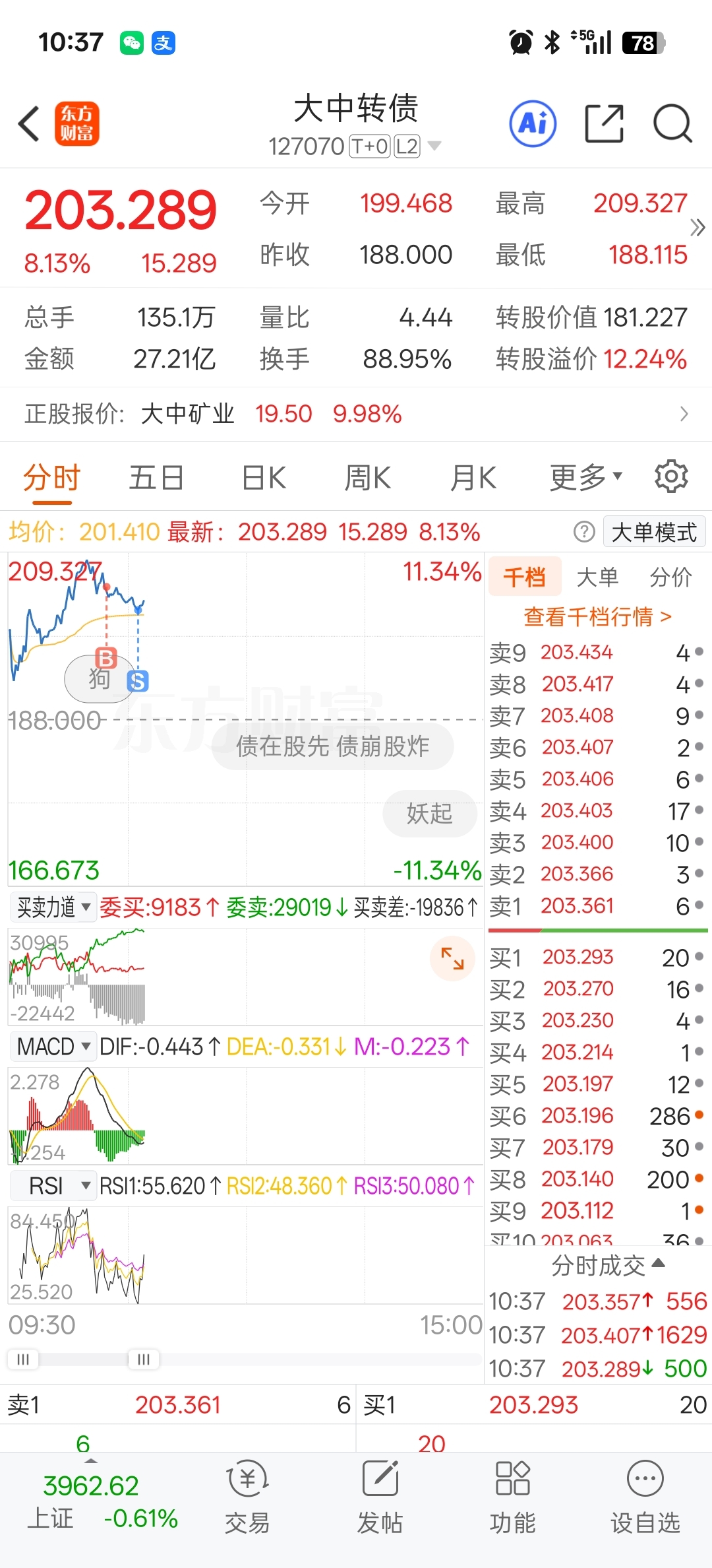 $大中转债(SZ127070)$ 唯一亏的就是我了吧
