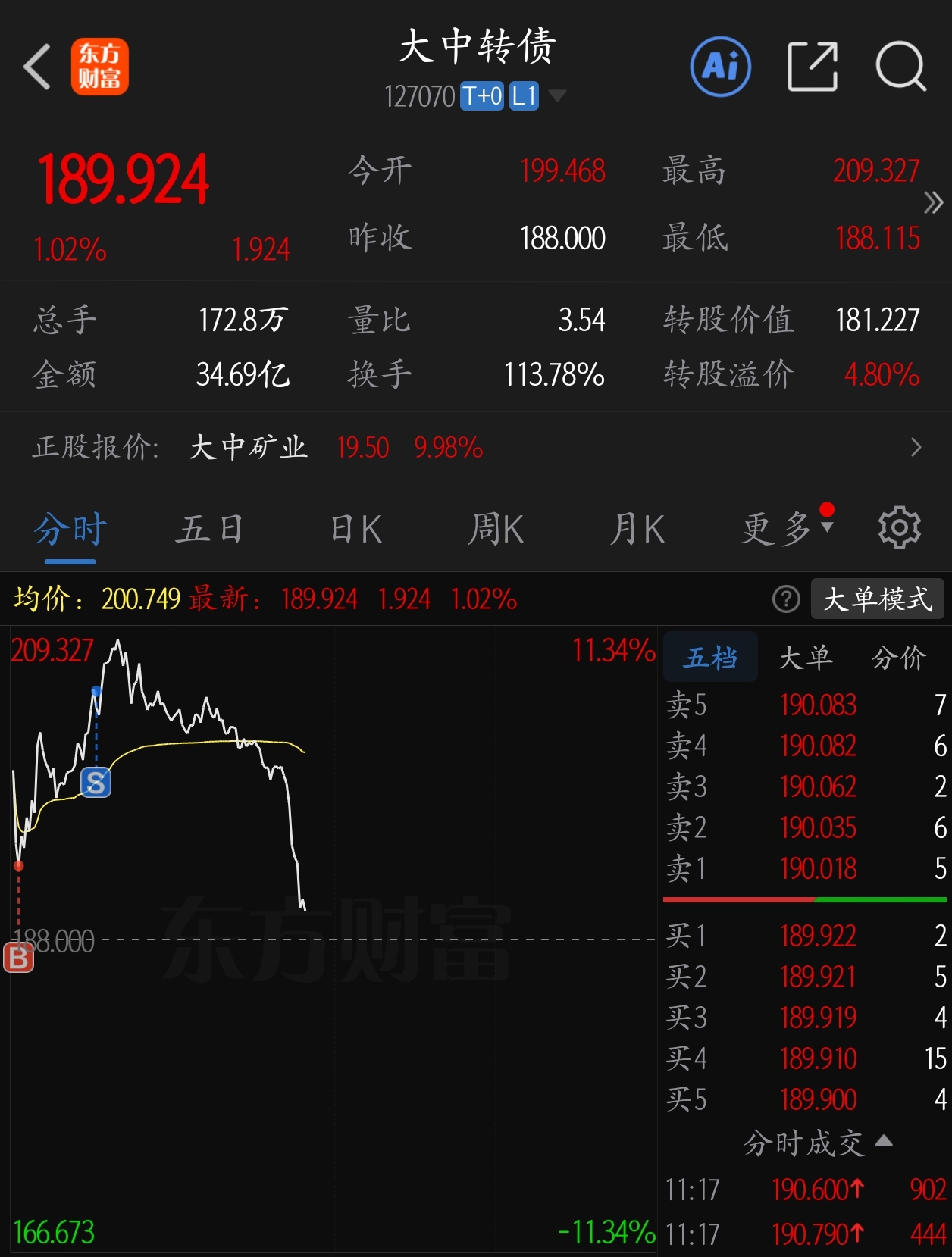 $大中转债(SZ127070)$ 还有什么事情比这更开心的??