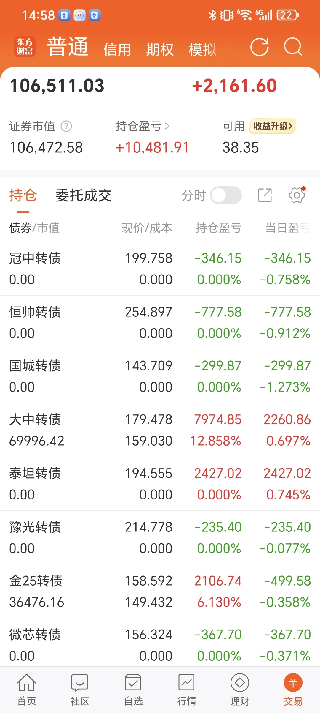 $大中转债(SZ127070)$ 今天不是一般的难,终于收盘了,泰坦卖飞了真是难受