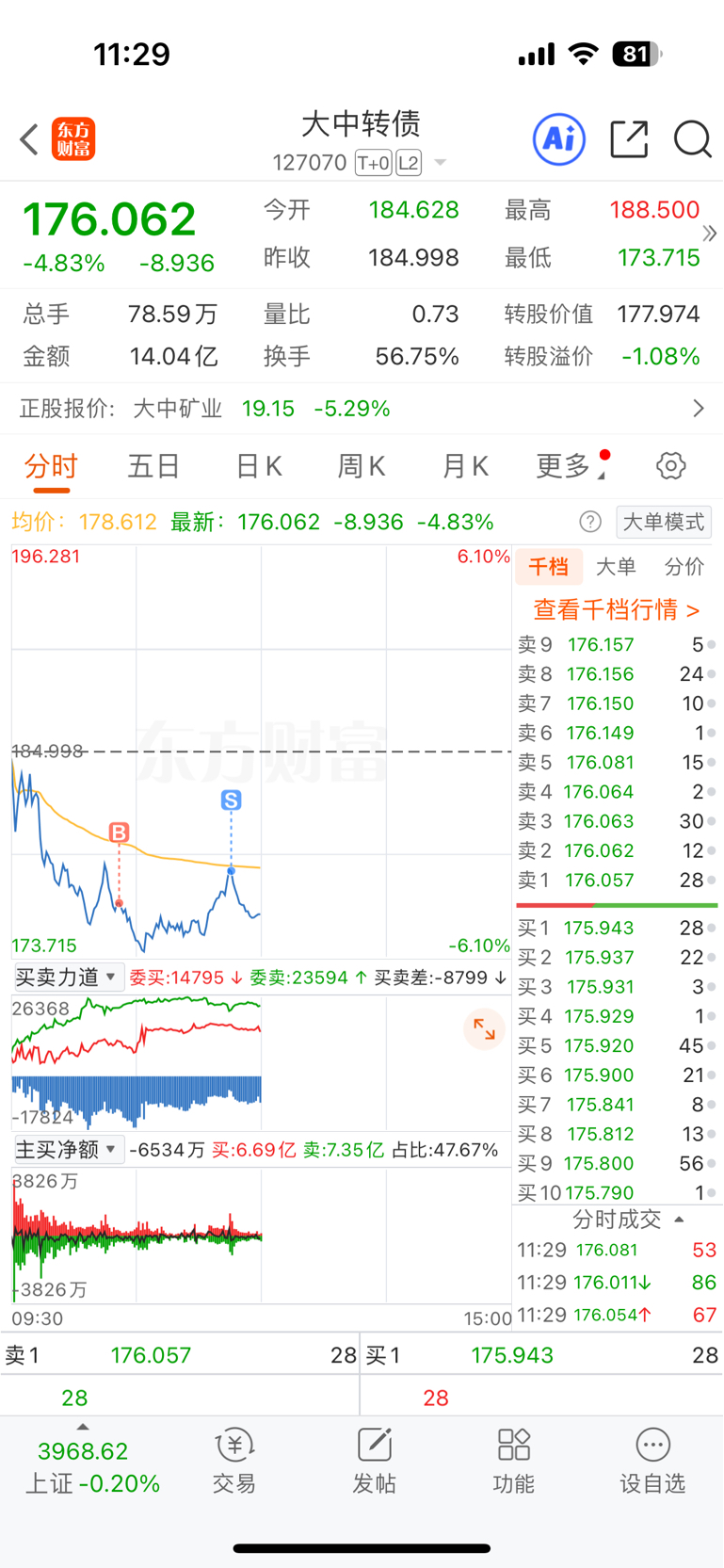 $大中转债(SZ127070)$ 差点又让我亏,我不玩你了。