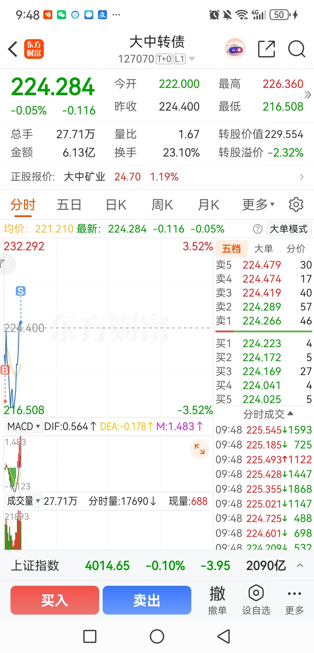 $大中转债(SZ127070)$ 感谢大哥又拉起来了