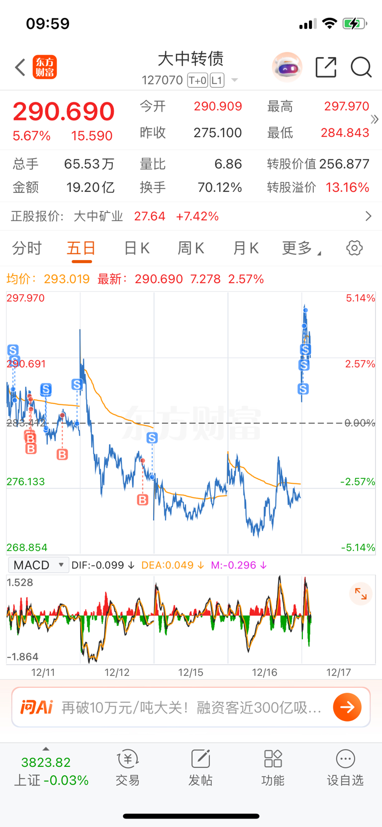 $大中转债(SZ127070)$ 好在周一周二没瞎操作,今天小赚,大家继续发财!