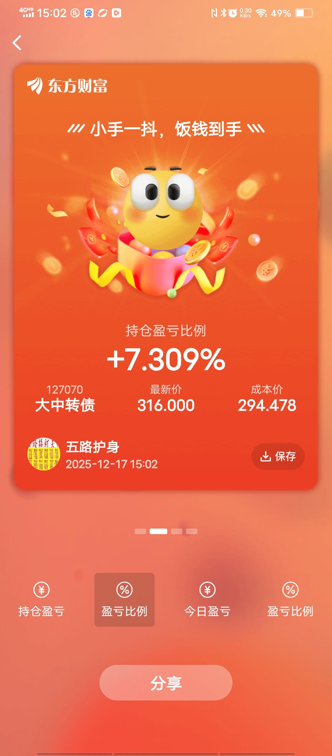 $大中转债(SZ127070)$ 我看到已经很晚了,尾盘大涨明天高开出,如果开盘杀下来不用慌,这个在起涨点