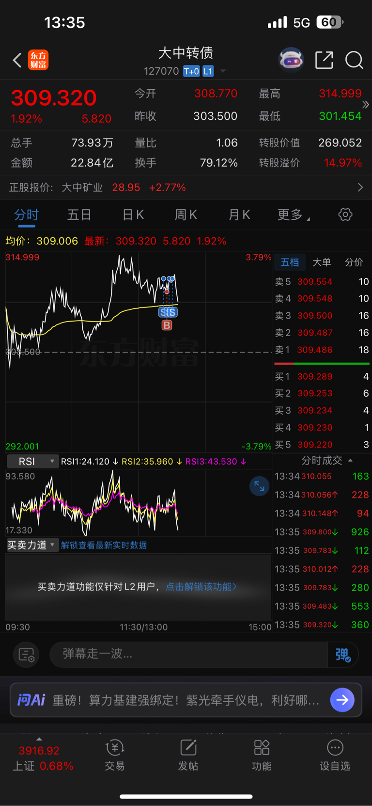 $大中转债(SZ127070)$ 有时候我都怀疑我是主力。。。一卖就砸下去了