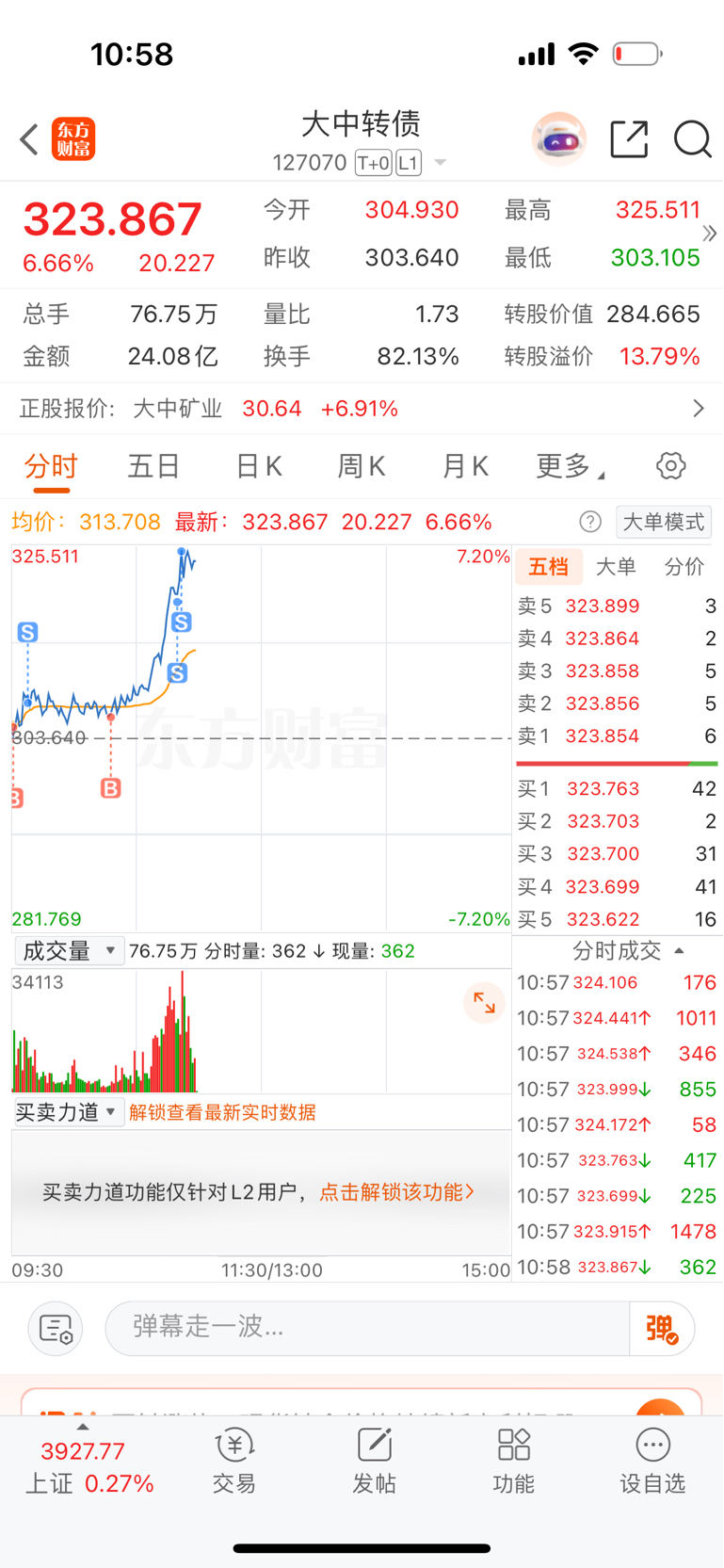 $大中转债(SZ127070)$ 它只适合早上做, 午盘后要走,不然会亏没掉!
