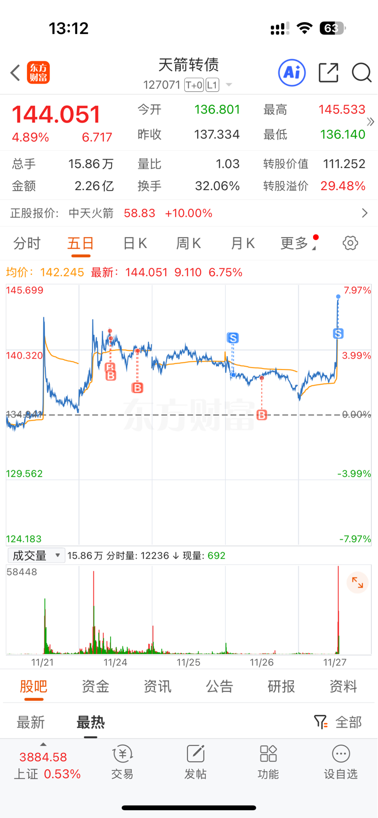 $天箭转债(SZ127071)$ 小赚一点出局,感谢