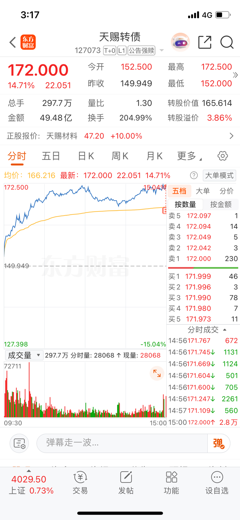 $天赐转债(SZ127073)$ 尾盘300张过夜