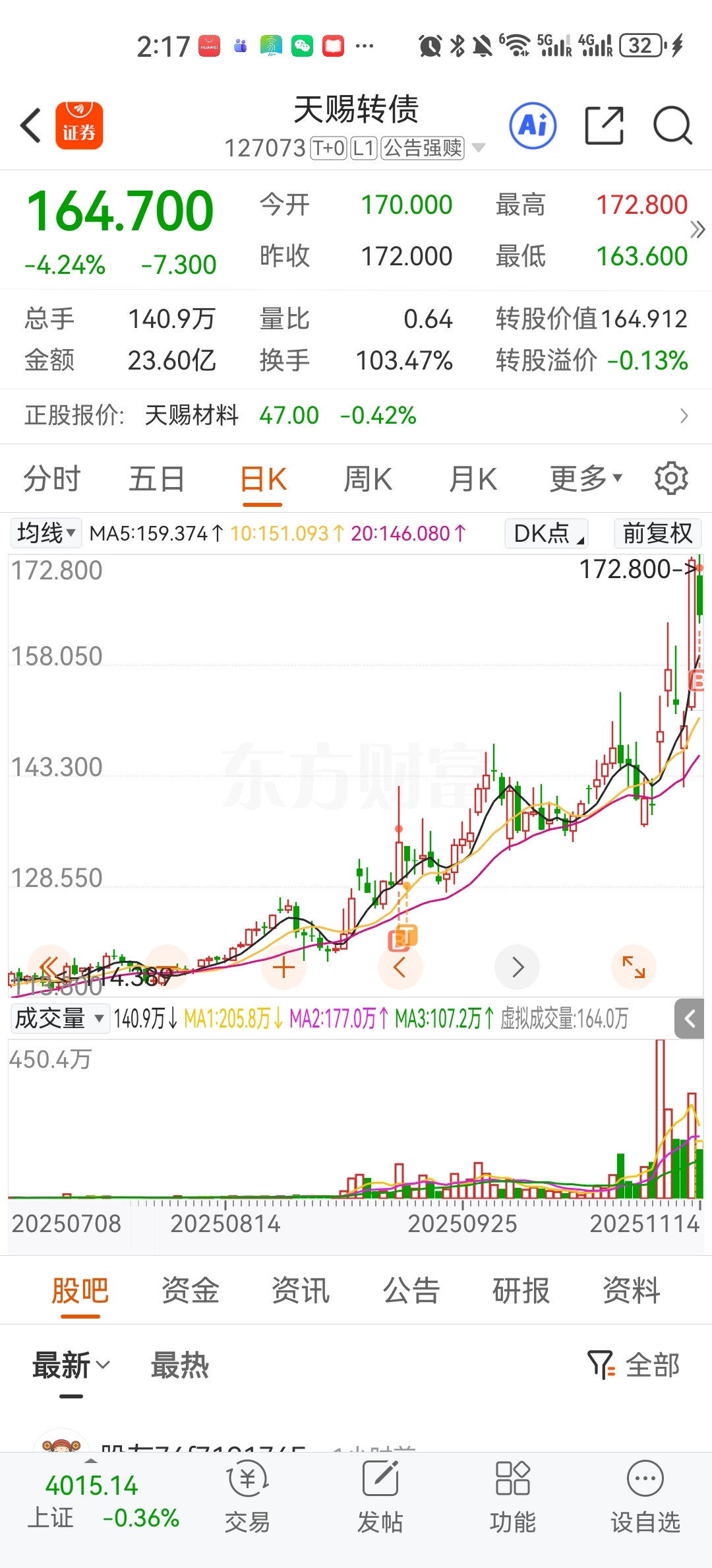 $天赐转债(SZ127073)$ 今年就进来两次,两次都是买进就大跌,一个翻倍股,我居然在它身上买两次亏了10%