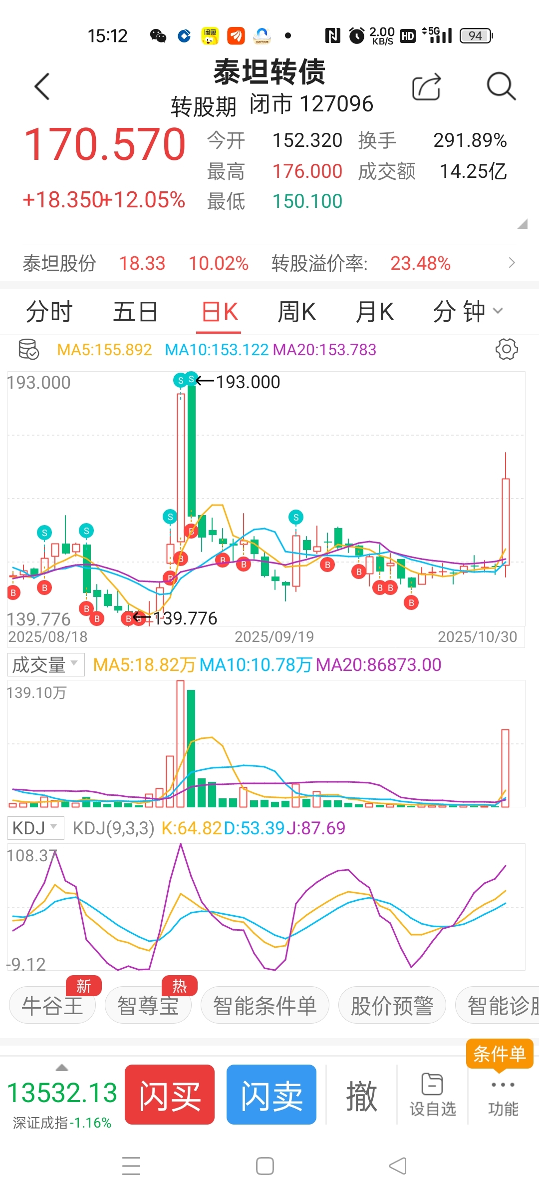 $泰坦转债(SZ127096)$ 我总感觉后面能涨到200,就是不知道什么时候,今天让我155左右卖了大半,哭晕,个人看法