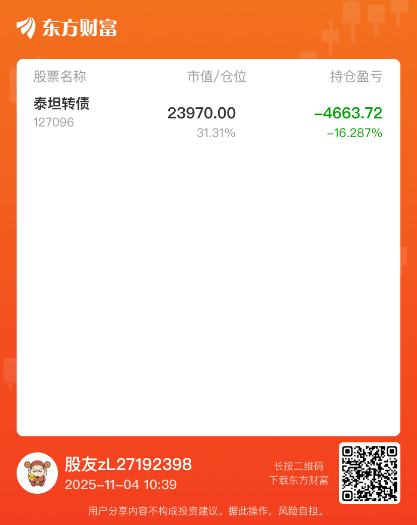 温馨提示: 1.根据《证券法》规定,禁止编造、传播虚假信息或者误导性信息,扰乱证券市场;2.用户在本社区发表的所有资料、言论等仅代表个人观点,与本网站立场无关,不对您构成任何投资建议。用户应基于自己的独立判断,自行决定证券投资并承担相应风险。《东方财富社区管理规定》