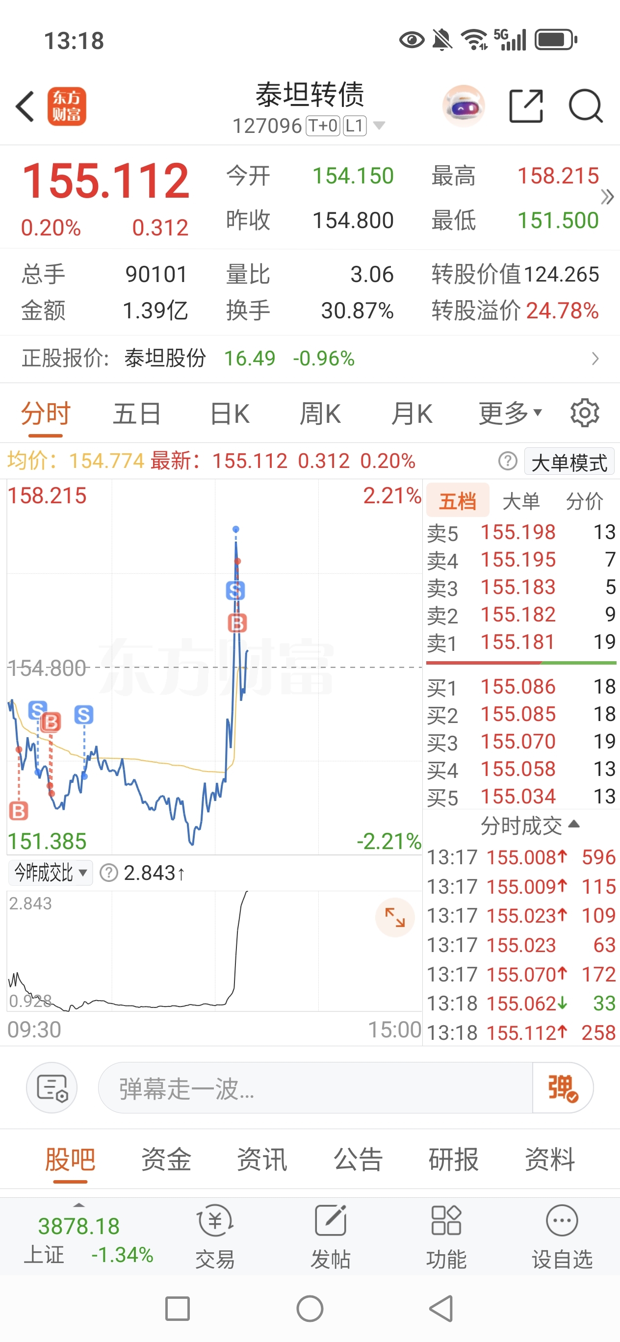 $泰坦转债(SZ127096)$ 尾盘我要不卖,我就回本了,我要不这么早接,现在成本就能到156