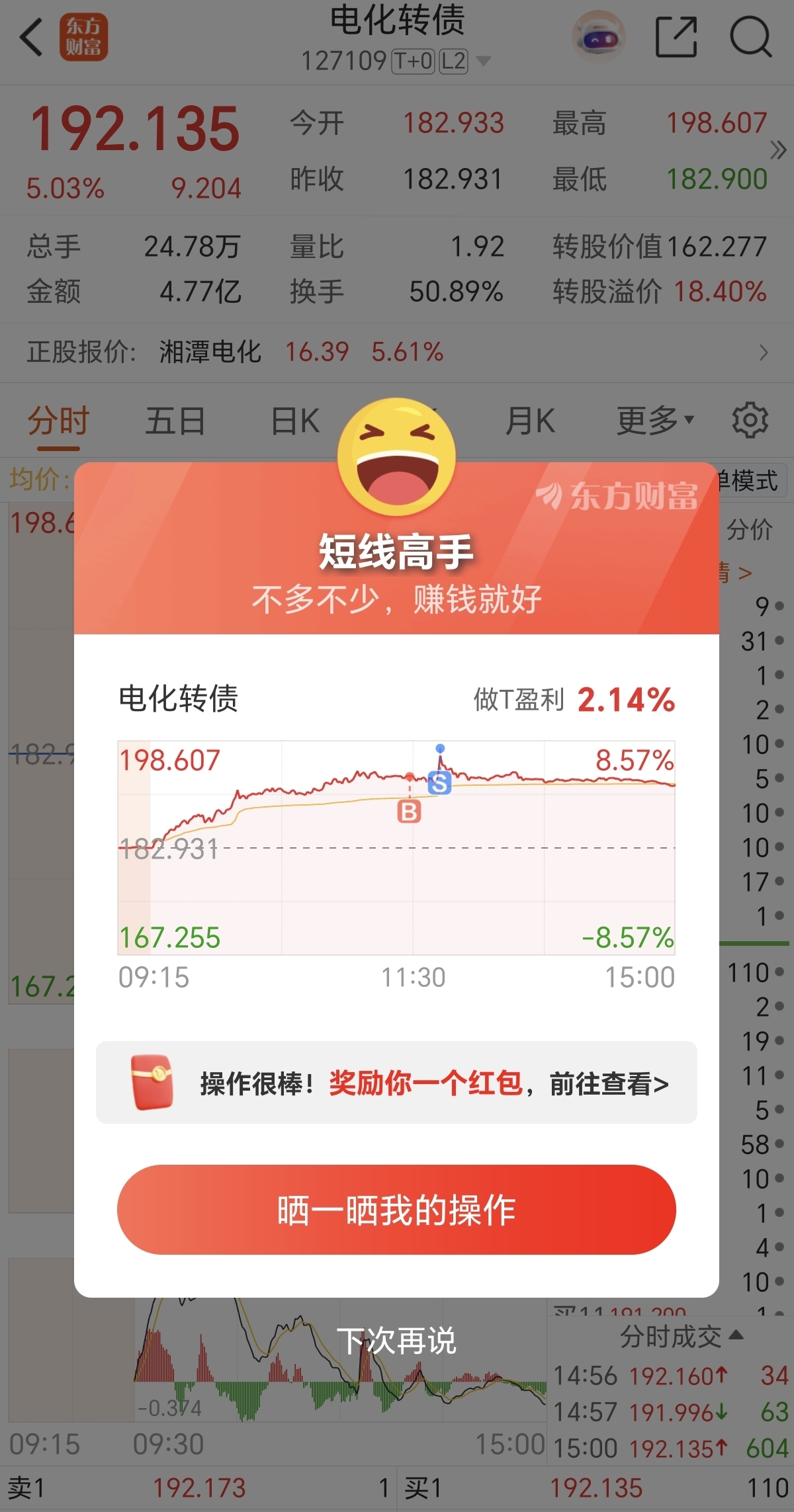 $电化转债(SZ127109)$ 鱼尾也是肉,卡点卖出