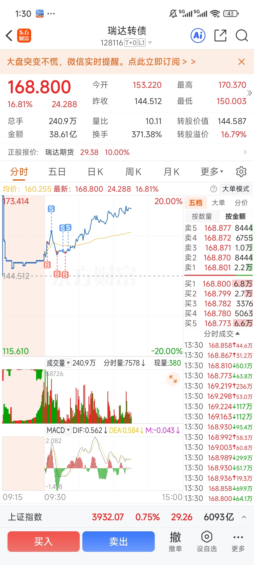 $瑞达转债(SZ128116)$ 今天真该格局一下