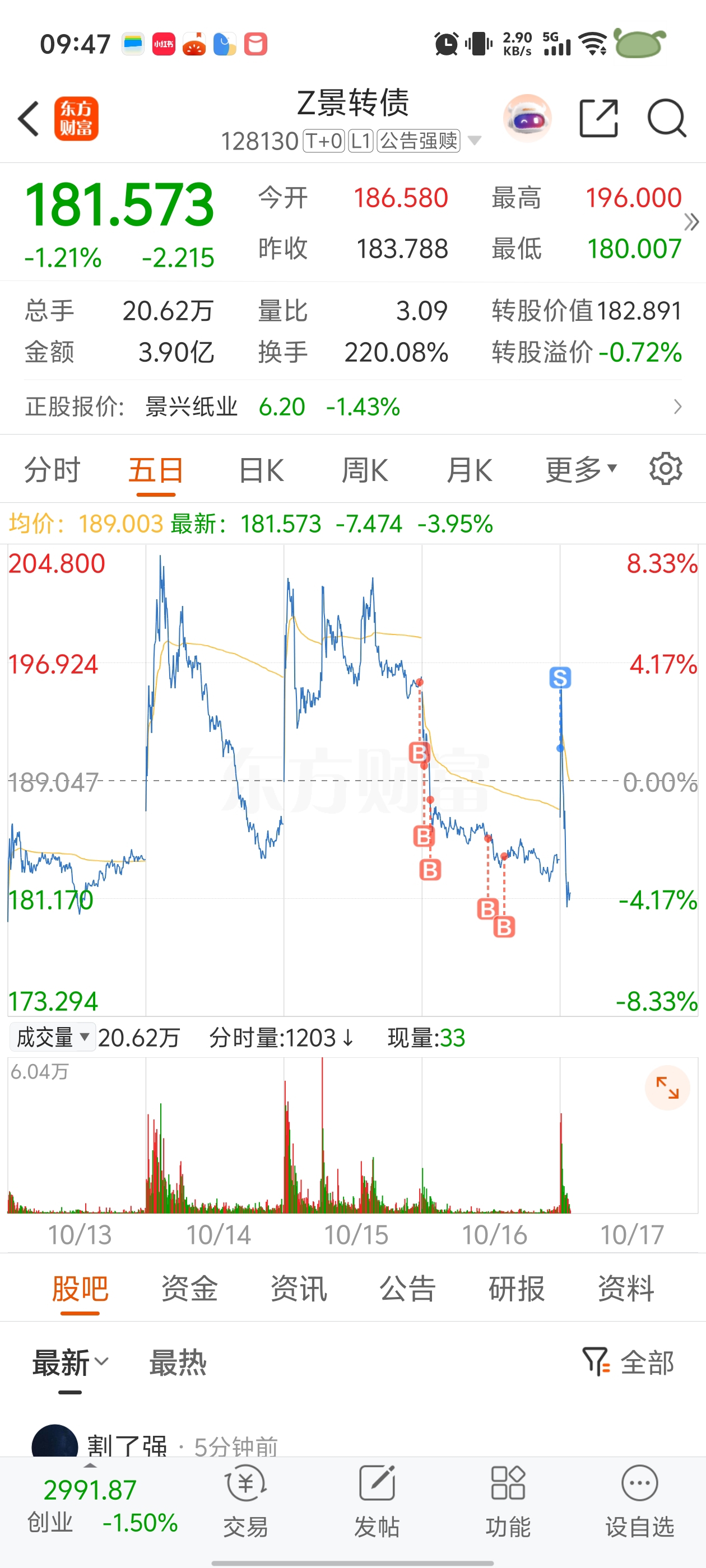 $Z景转债(SZ128130)$ 感谢主力的不杀之恩,周五了,大盘不好,先撤了
