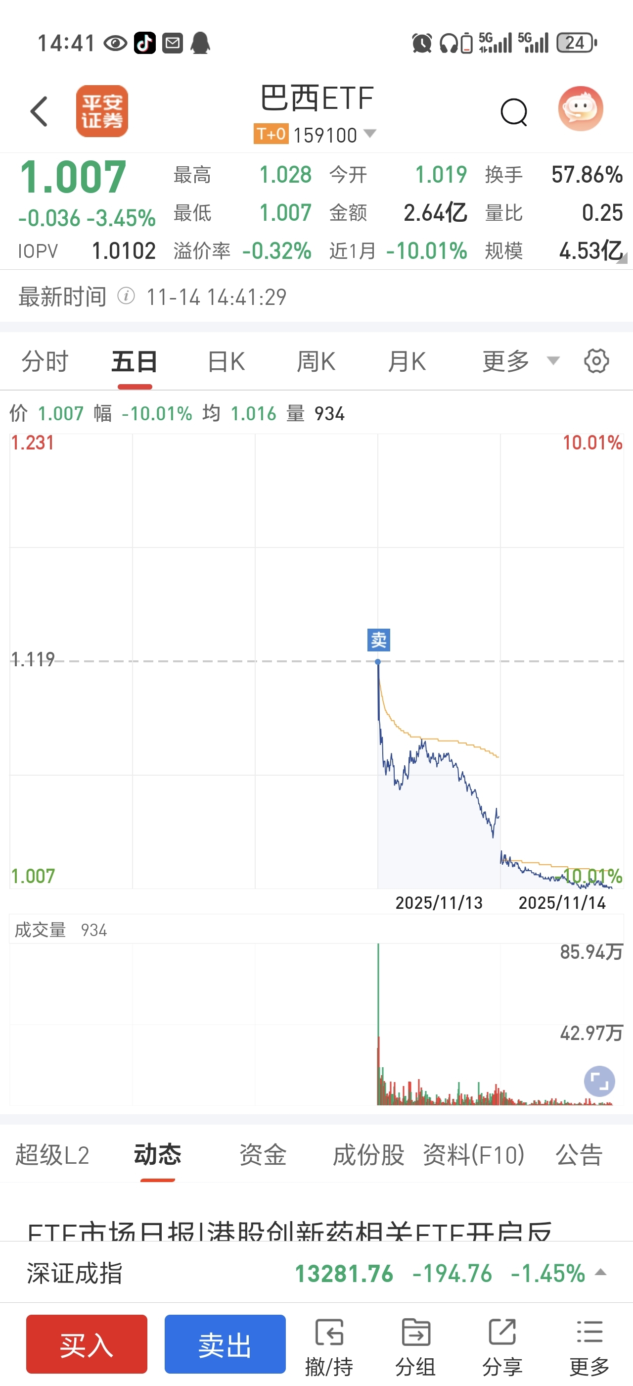 $巴西ETF(SZ159100)$ 干到负溢价了。。。。