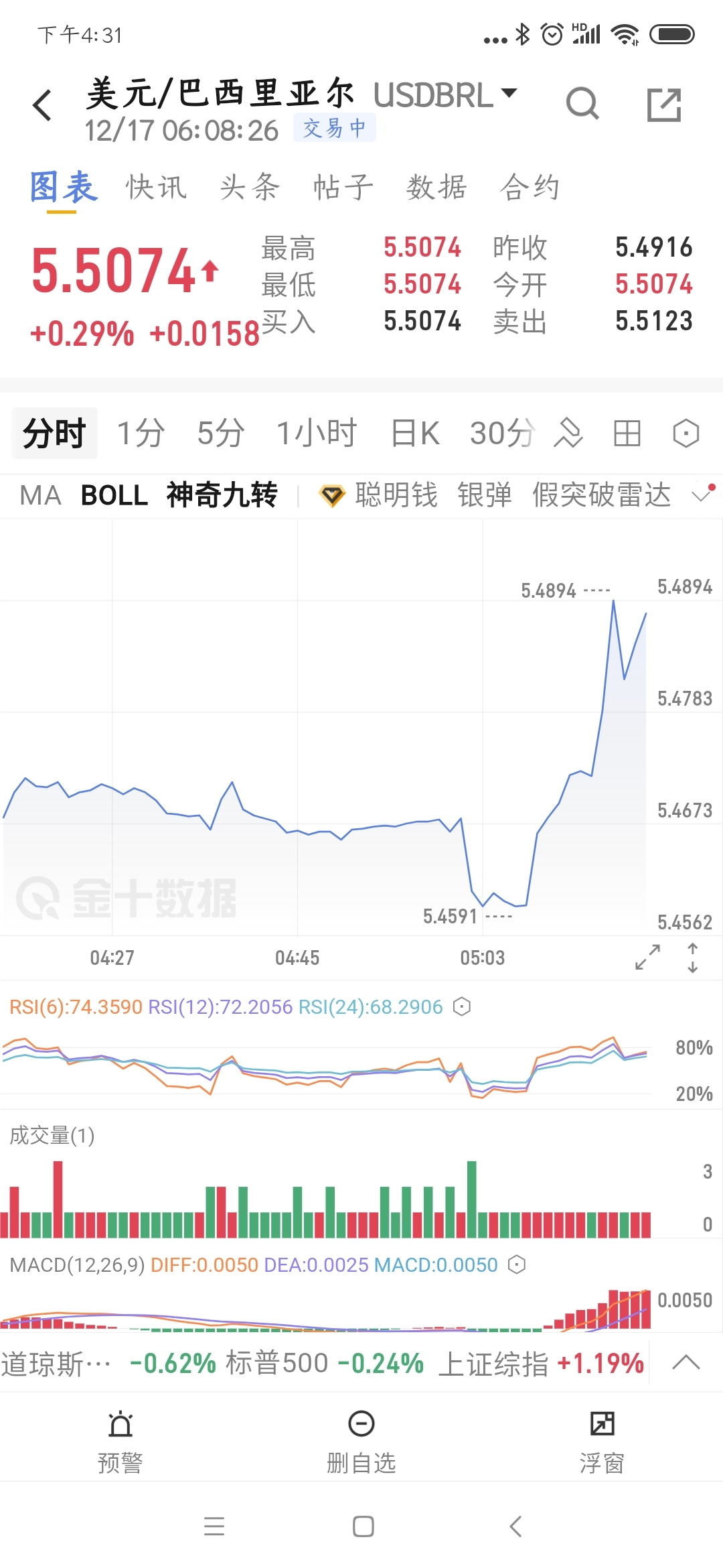 $巴西ETF(SZ159100)$ $巴西ETF(SH520870)$ 巴西汇率盘中又跌了0.8%,继续吃面