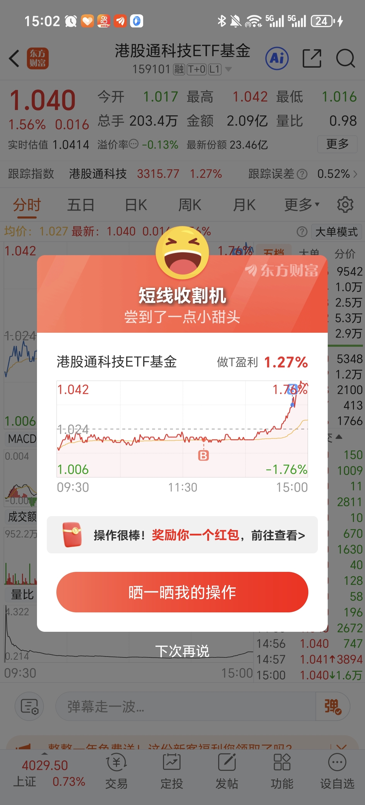 $港股通科技ETF基金(SZ159101)$ 买少了卖亏了