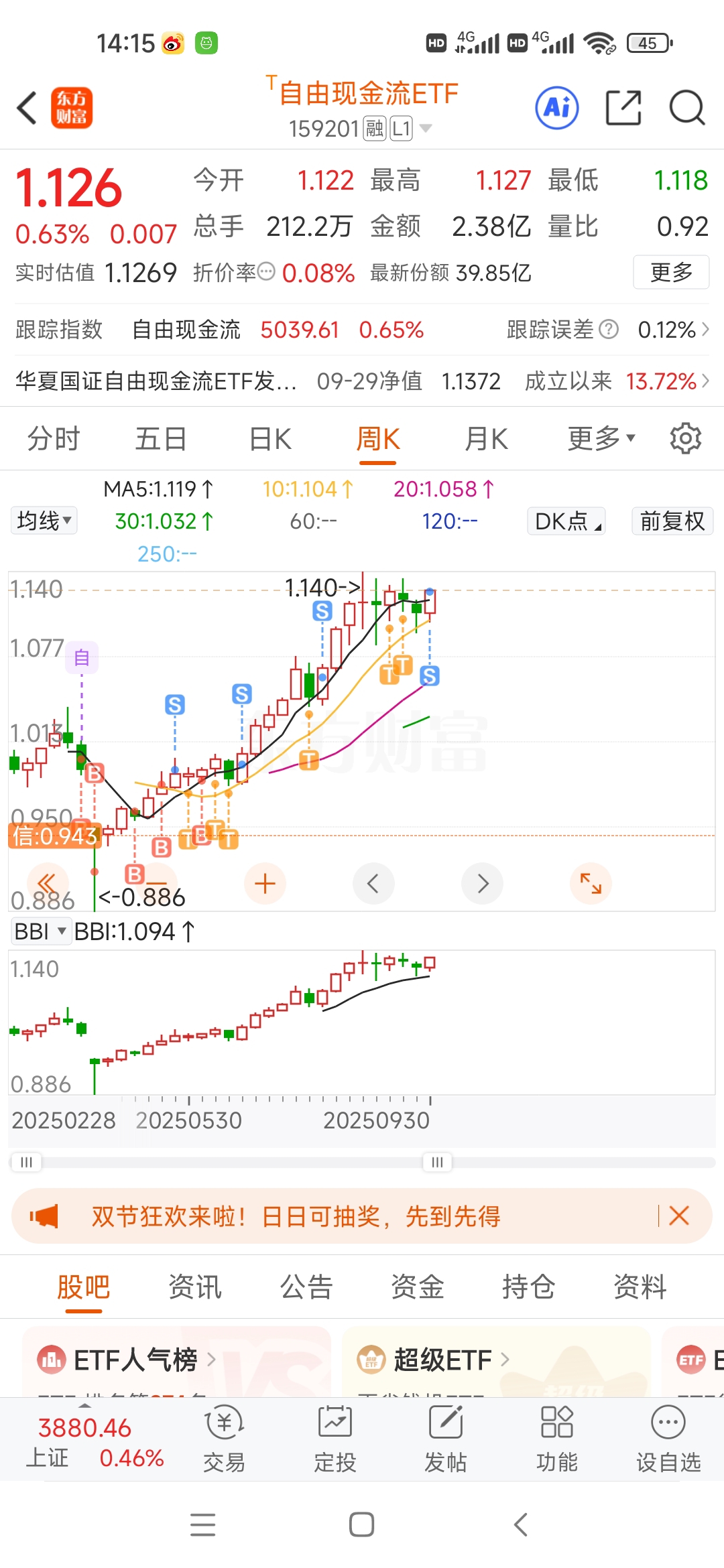 $自由现金流ETF(SZ159201)$ 不断做T,降低成本