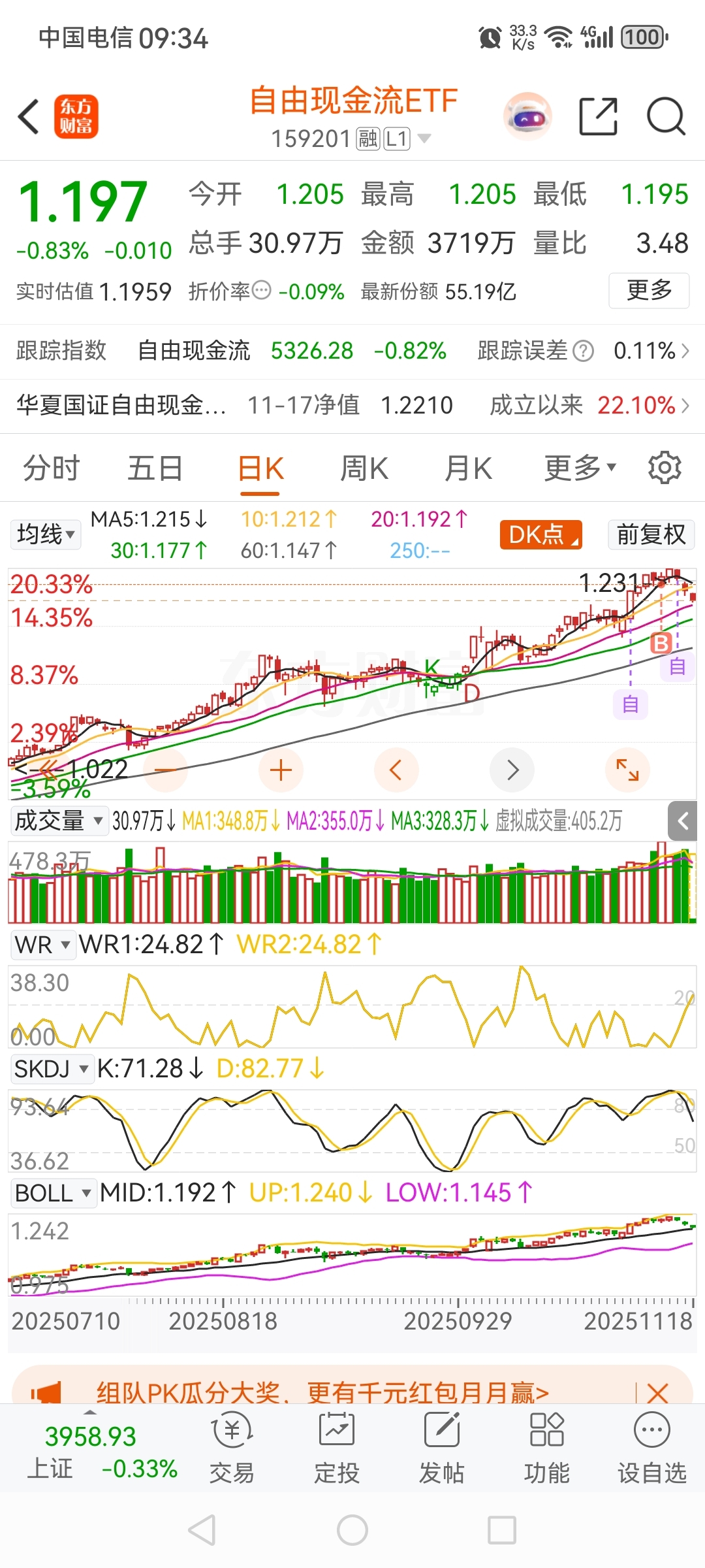 $自由现金流ETF(SZ159201)$ 不买的时候,看着你天天涨,一买就天天跌,高位站岗
