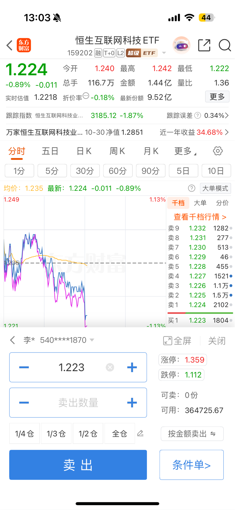 $恒生互联网科技ETF(SZ159202)$ t+0的不让卖?!?