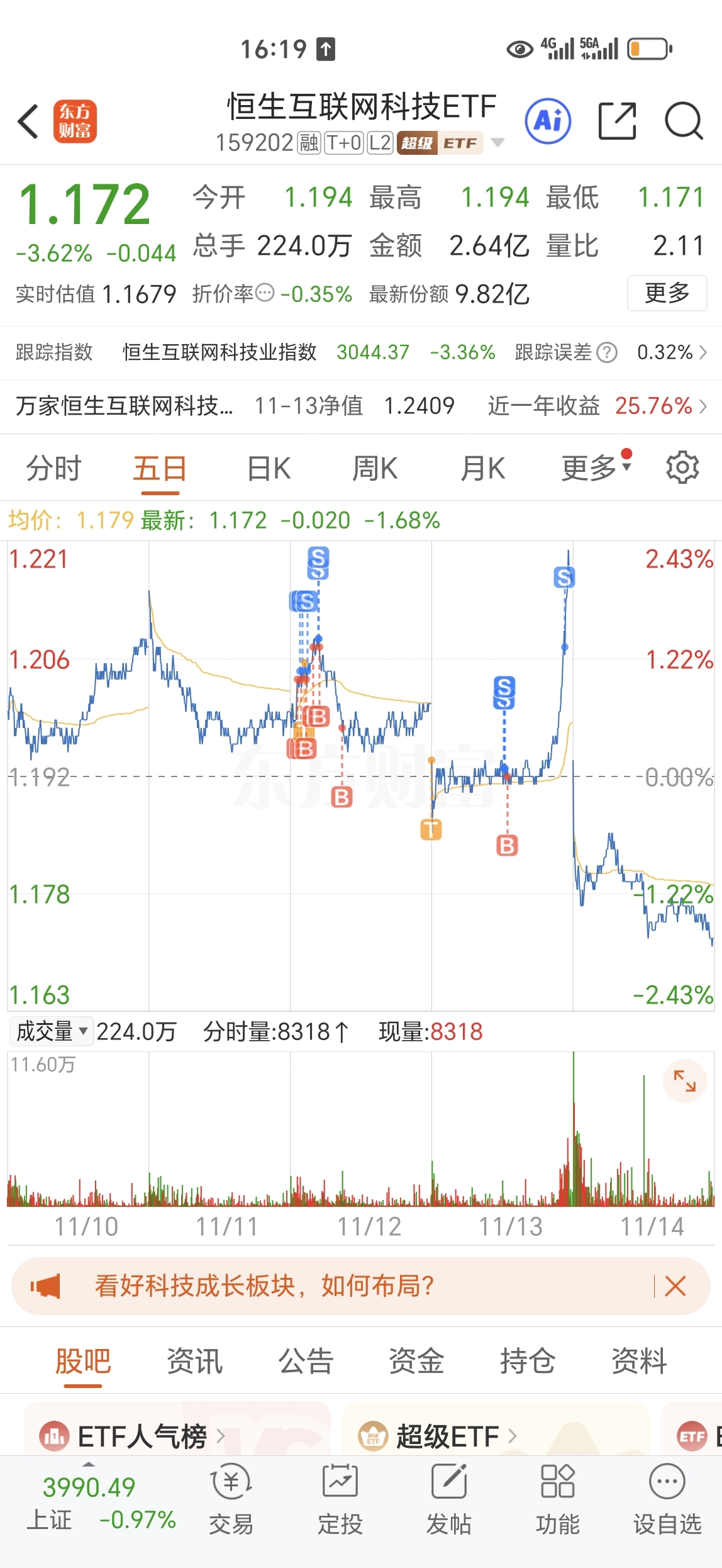 $恒生互联网科技ETF(SZ159202)$ 下星期再玩