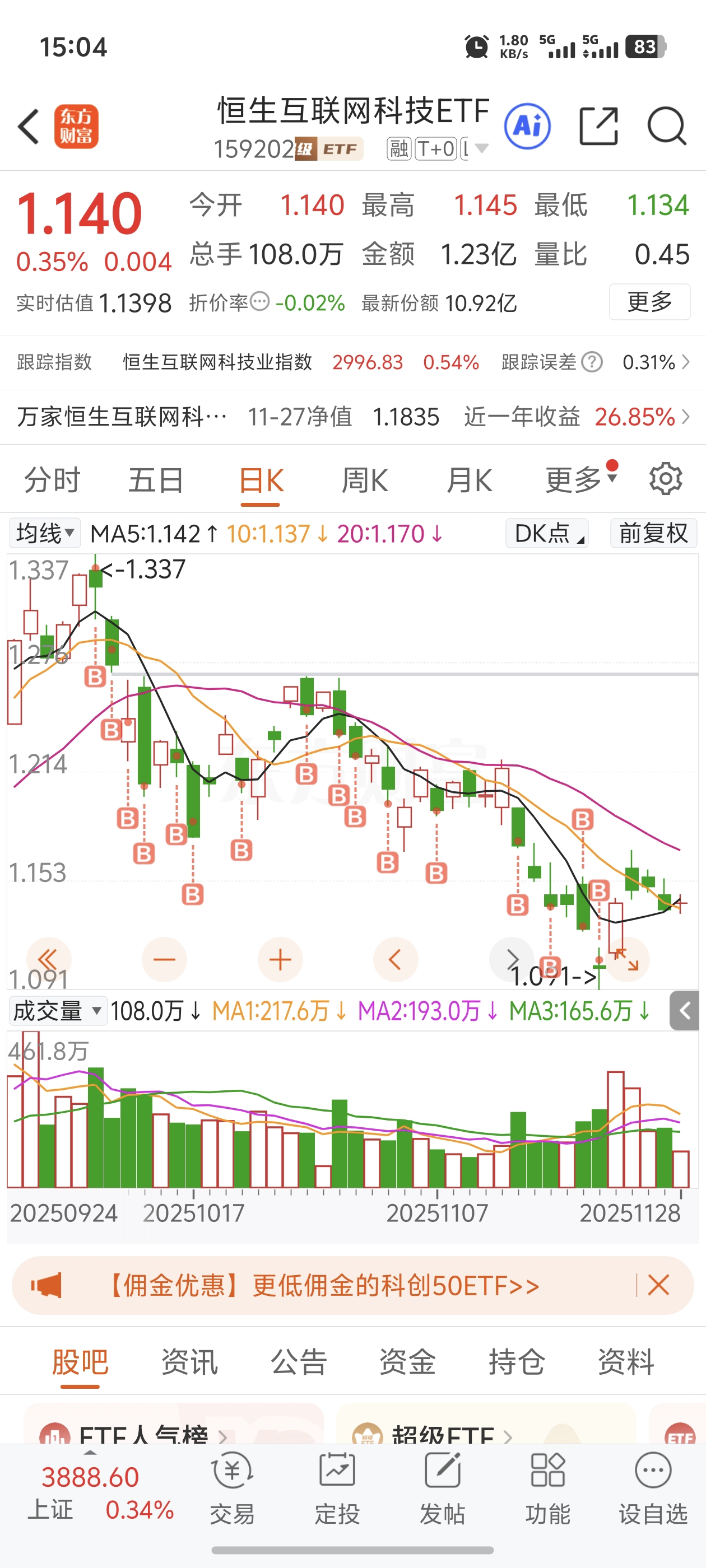 $恒生互联网科技ETF(SZ159202)$ 我幸亏拿他当定投,不然我就妥妥的成旗杆了