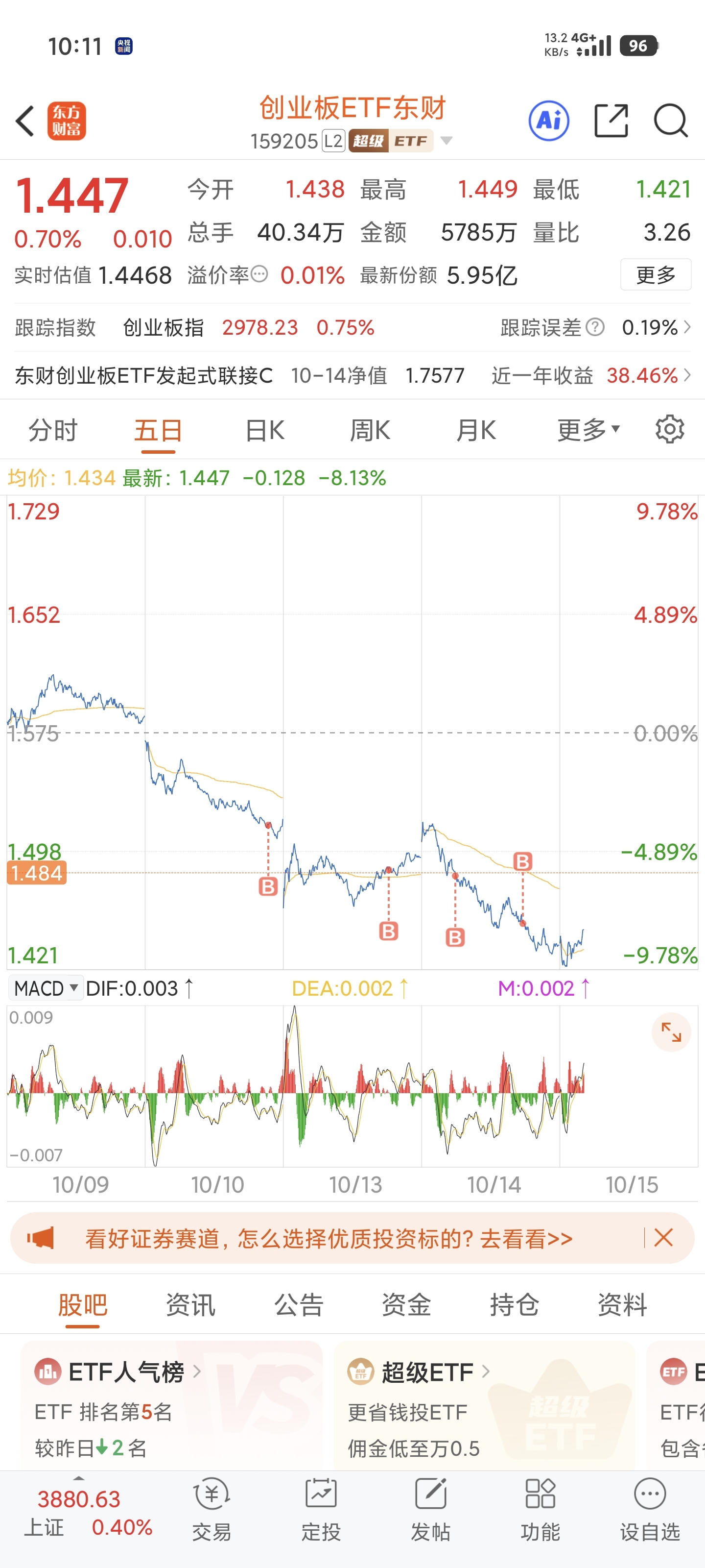 $创业板ETF东财(SZ159205)$ 让我回本啊 呜呜呜