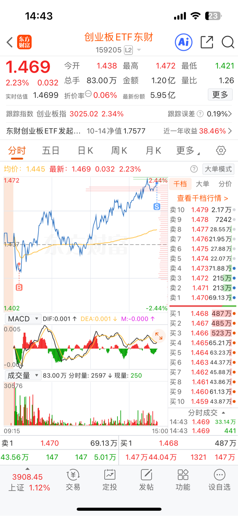 $创业板ETF东财(SZ159205)$ 做个T吧