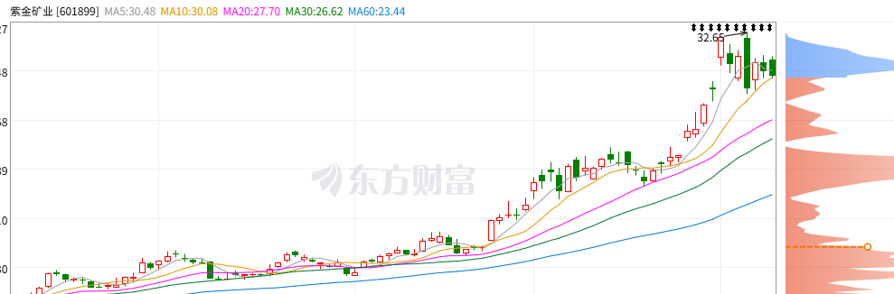 紫金矿业601899:有色概念,目前市场当中持续性最好的就是这个方向了,也是接下来有可能成为主线的。周五回踩完10均。如果今天能不破的话会有大新高出现。顺利的话喜欢的可以加T