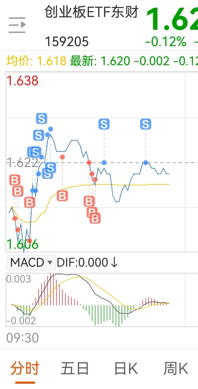 $创业板ETF东财(SZ159205)$ 把今天抄底做T的再卖了,保持7层仓位不动,上分1.640-1.660大压力位。到了我都会减仓一层。