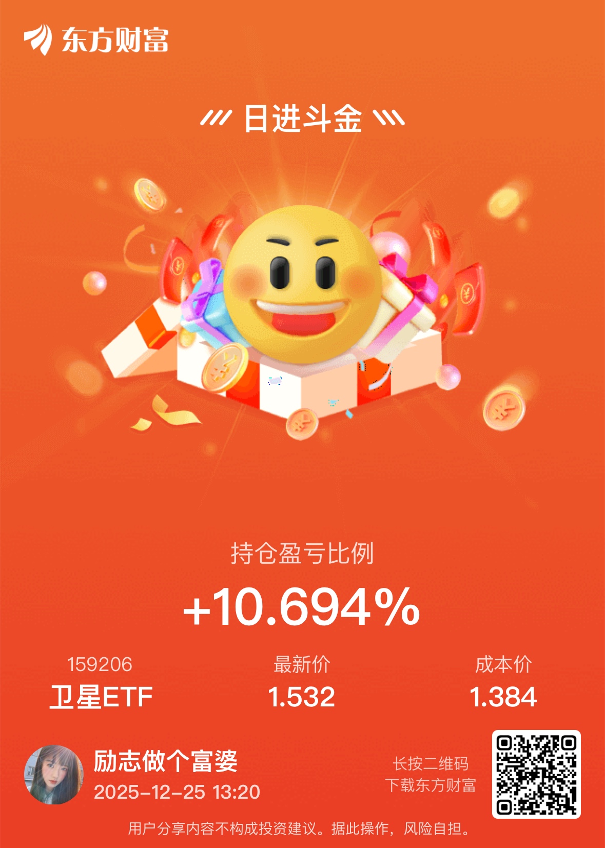 $卫星ETF(SZ159206)$ 两天进来吃10个,舒服。