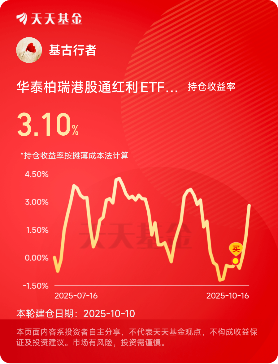 华泰港股通红利今日表现强劲,单日上涨1.67%,喜提三连阳。在当下波动市中,此类