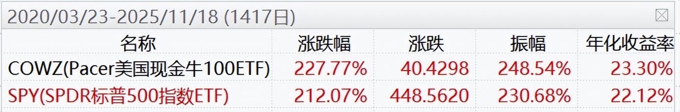 美股亦有自由现金流策略,2016年上市的COWZ(Pacer US Cash Flows 100 ETF)目前规模高达180亿美元。