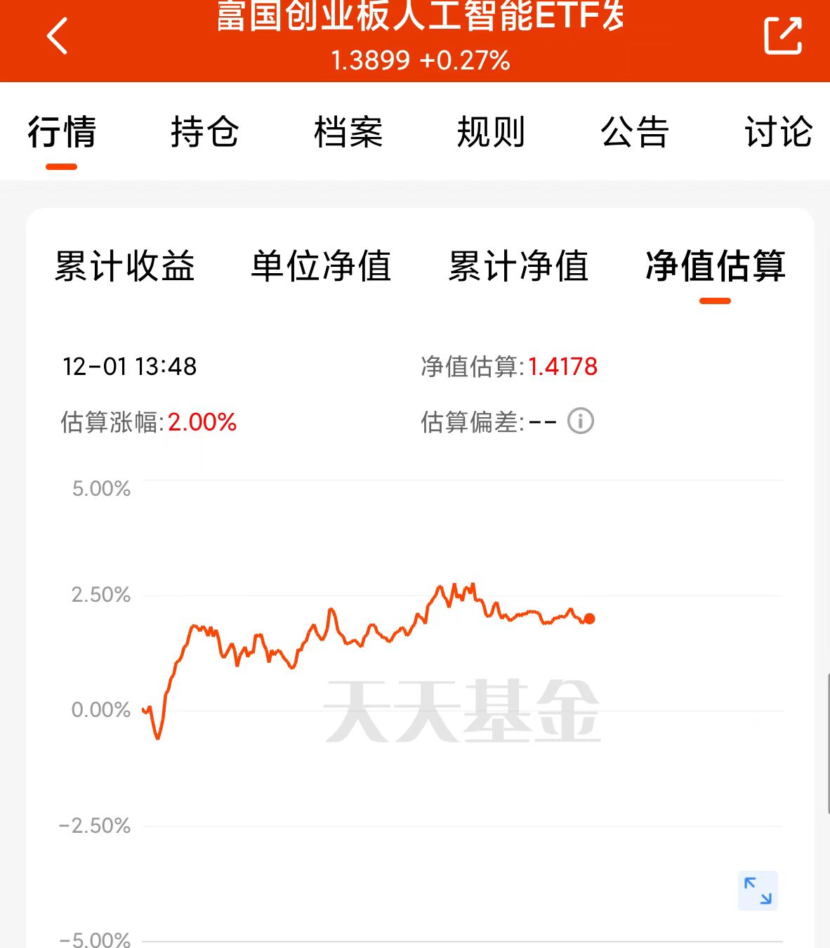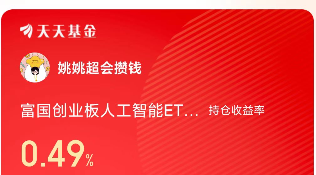 咱在市场中选对工具才是躺赢关键!富国创业板人工智能ETF联接C(024663)重仓AI软硬件龙头,非AI个股全剔除,纯度拉满!这不,已经稳稳跑赢CS人工智能指数,姚姚现在收益0.49%,今天过后直接奔着3%+去!顺风局已开,姚姚准备蹲个低点继续上车!