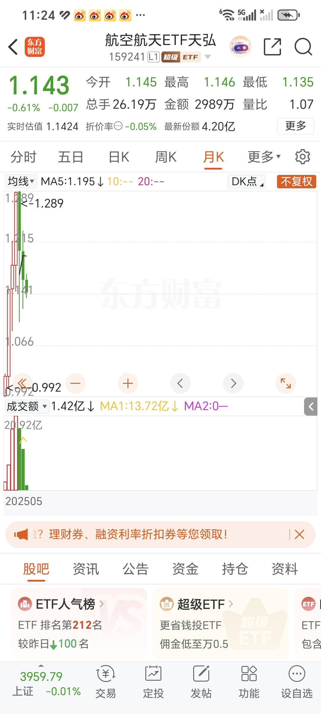 $航空航天ETF天弘(SZ159241)$ 就问你们敢不敢买
