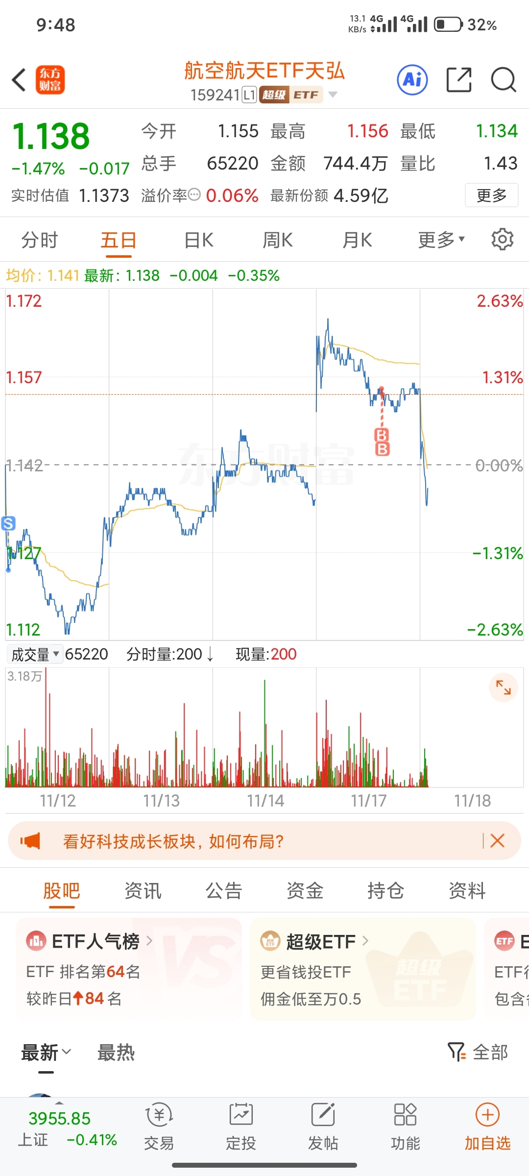 $航空航天ETF天弘(SZ159241)$ 一买就跌,一卖就涨出来就是我了