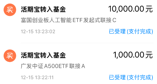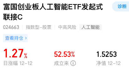 我加仓$富国创业板人工智能ETF发起式联接C(OTCFUND|024663)$10000元!跟踪的创业板AI指数这会看跌2%左右,最近连续上涨创新高,涨幅也比较多,这个位置有个震荡调整正常,不然一直上涨也不敢上车太多,趁今天下跌我果断大额冲上一笔1万元。