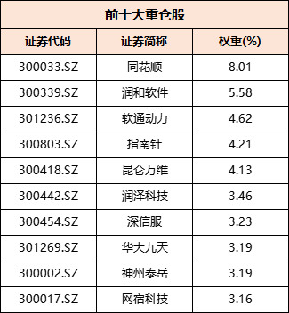创业板软件ETF华夏(认购代码159256)挂钩创业板,单日涨跌幅限制是20%,相较于其它主板软件指数弹性更好,再加上它还有小盘股基因(成分股流通市值100亿元以下成分股占42%),进攻性更强,一旦软件产业进入上行周期,指数更容易率先跑出来。