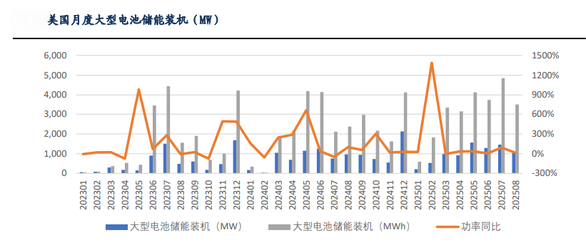 美国储能市场的爆发性增长为这一策略提供了坚实支撑。据EIA最新数据,2025年8月美国大储新增装机1085MW,对应储能容量3489MWh,平均配储时长3.2小时。2025年1-8月累计装机量达8043MW,同比增长33%,对应储能容量25.1GWh,同比增速高达46%。Wood Mackenzie的预测更显乐观:25Q2美国储能装机量达15.8GWh,同比激增37%,全年指引52.5GWh,增幅45%。其中,大储装机量在Q2达到15.0GWh,环比增长267%,成为最强劲的增长引擎。这种增长背后,是海外数据中心对配储需求的刚性提升——在AI算力中心能耗激增的背景下,储能系统已成为保障数据中心24小时稳定运行的关键基础设施。