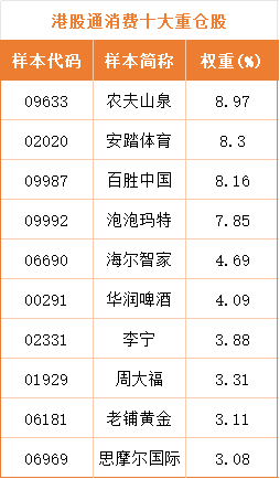 港股消费关联个股:泡泡玛特、百胜中国、安踏体育、农夫山泉、百胜中国、海尔智家、华润啤酒、老铺黄金、思摩尔国际、蒙牛乳业。