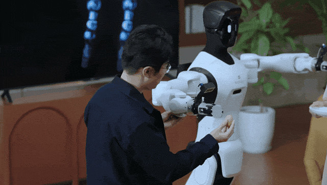 G2搭载全球首款十字腕力控臂,7自由度配合扭矩传感器实现细腻力控,手臂像弹簧一样有弹性,支持双电池热插拔+自主回充保障24小时连续作业,还能实现多人实时智能交互,适配工业生产、物流分拣、商业导览等多个场景。
