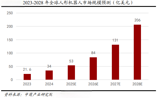 从市场波动表象看,年底资金偏好向低估值板块迁移,叠加前期涨幅累积的获利盘压力,导致机器人板块出现阶段性调整。但这种调整与产业基本面形成显著背离:国内外机器人研发进展持续突破,特斯拉Optimus量产计划明确,国内头部企业如埃斯顿已实现运动控制器、伺服系统、减速器三大核心零部件的国产化配套,成本控制与供应链稳定性优势显著。根据中商产业研究院,预计2028年全 球人形机器人市场规模超200亿美元,2023-2028年全球人形机器人市场规模CAGR高达 56.99%。未来随着人形机器人产品智能化程度不断提升,远期市场空间更为广阔。这种产业进展与市场情绪的短期错配,恰为理性投资者提供了布局窗口。