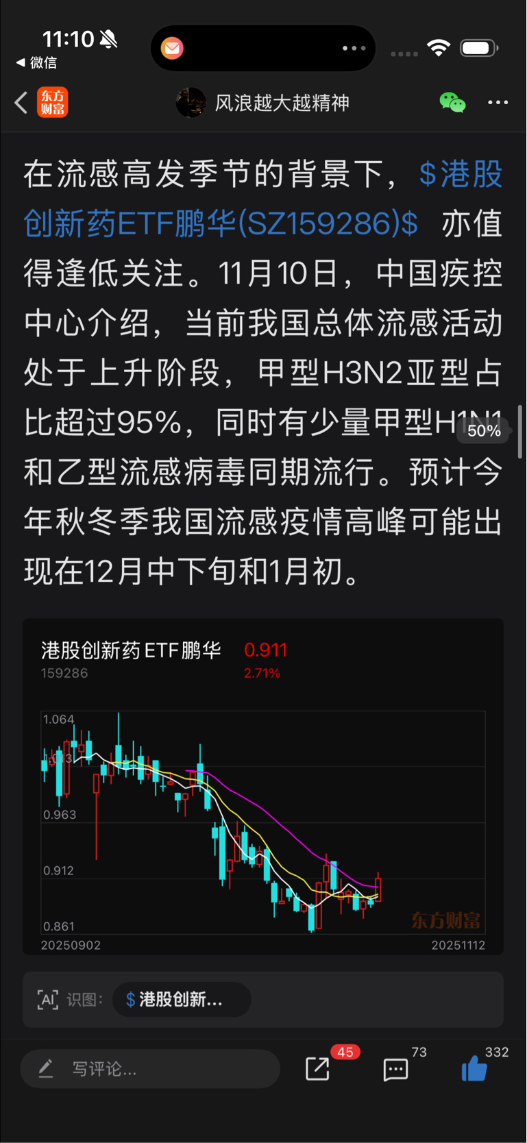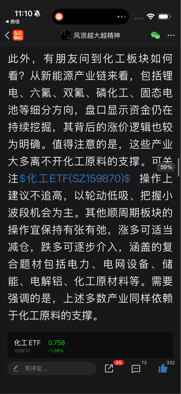 注意到评论区部分投资者说昨日提示的$港股创新药ETF鹏华(SZ159286)$ 和$化工ETF(SZ159870)$ 今日大涨,就此来看,完全符合预期。如果相信并听从我的观点,请您在此点赞留言,谢谢。