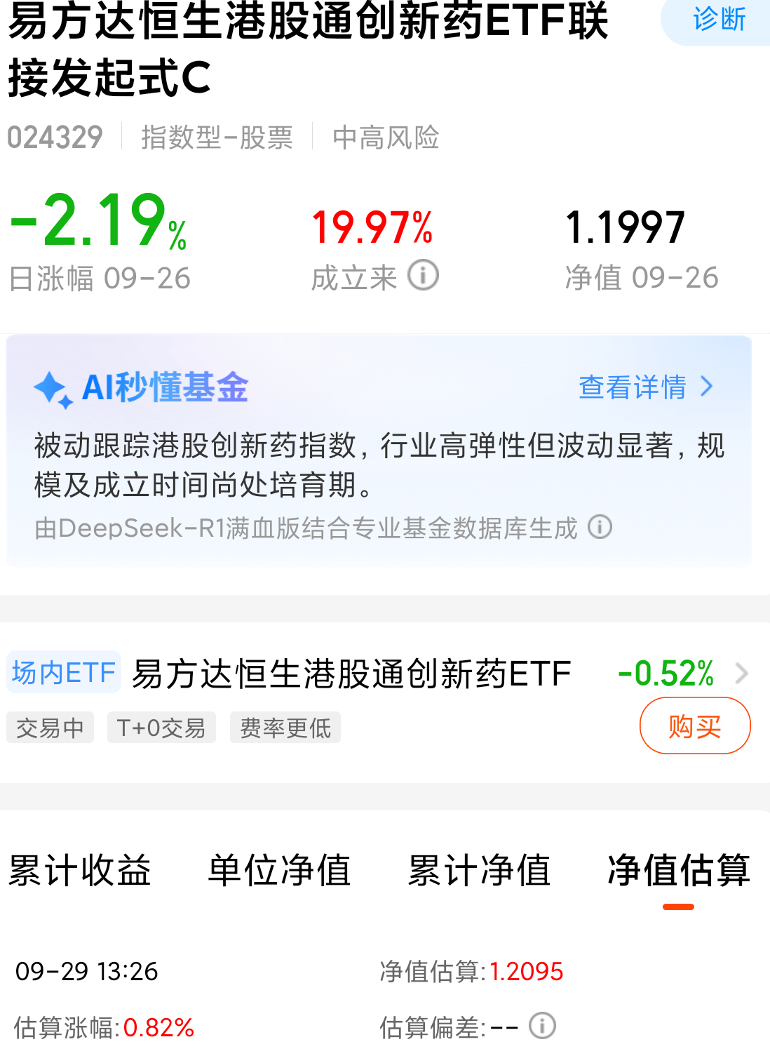$易方达恒生港股通创新药ETF联接发起式A(OTCFUND|024328)$