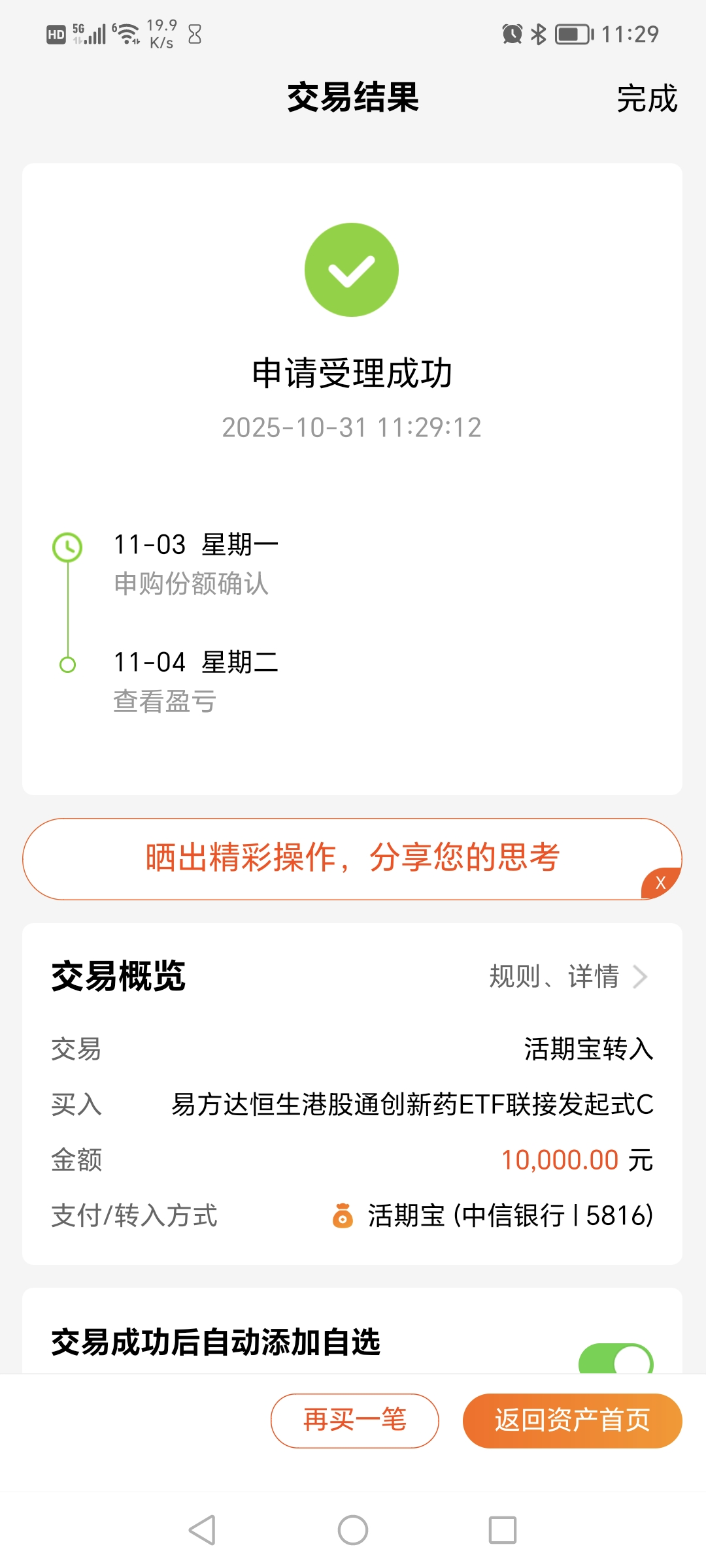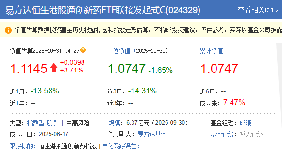 今天我看好易方达恒生港股通创新药ETF联接发起式C,这个品种是创新药方向的指数基金,跟踪标的是恒生港股通创新药指数,在上一周期创新药的上涨中,港股创新药表现比国内创新药强上不少。近期医药本是跌无可跌,从历史规律看,一旦形成对某一区域创新能力的集中认可,相关的License-out交易潮通常会持续1.5-2年。目前,国内仍有大量优质创新药品种的专利交易尚未落地,当前的节奏放缓只是产业长周期中的一个小波澜,趋势远未终结,这一次创新药的异动资金流入信号明确,说不定就是整个医药板块的启动信号,我先试试水好了。