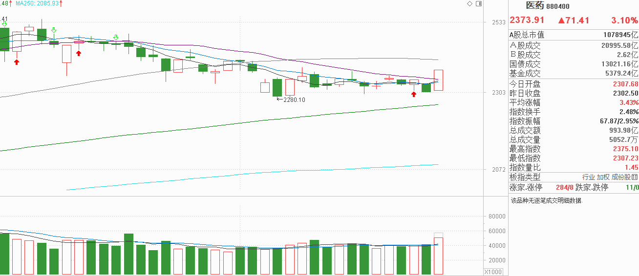 医药旱地拔葱,跌无可跌后中阳反弹!资金流入明显新周期要来?马上把握机会